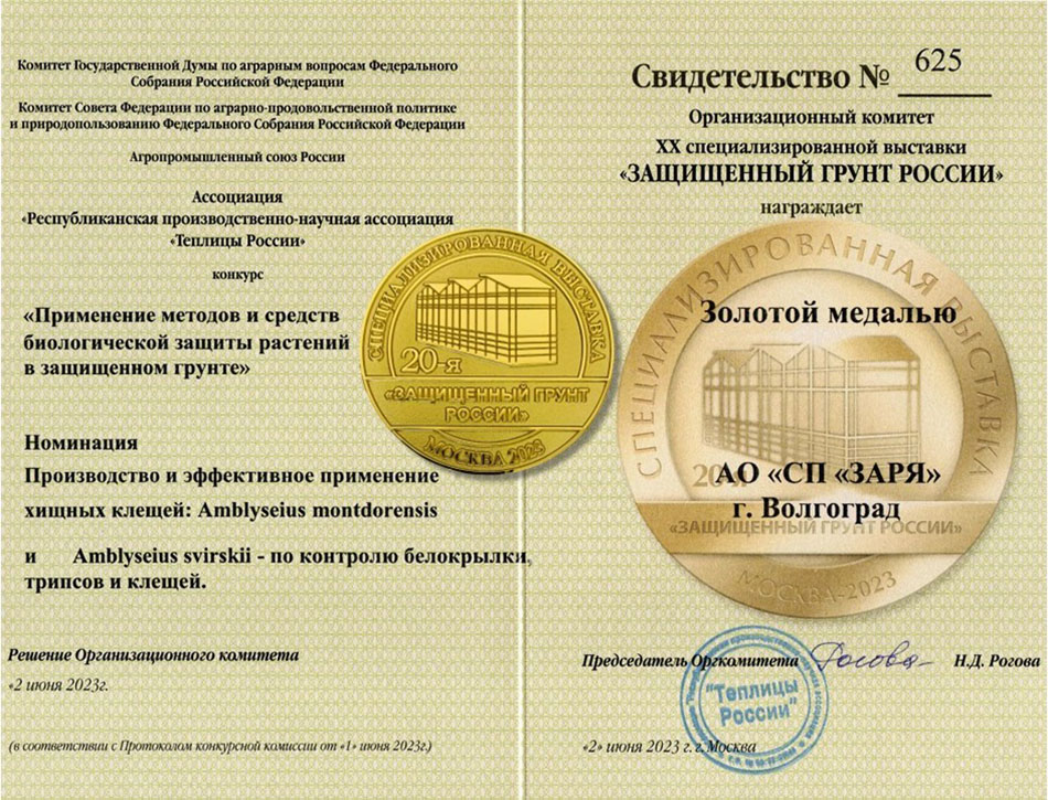 Никакой химии! В теплицах «Заря» мы применяем только естественные методы защиты и насекомых-энтомофагов. Продукция является полностью безопасной и пчелоопыляемой.